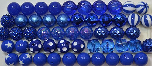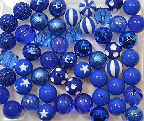 20mm Bulk Mix of 52 Royal Blue Chunky Bubblegum Beads 12 Styles Acrylic Gumball Beads Lot