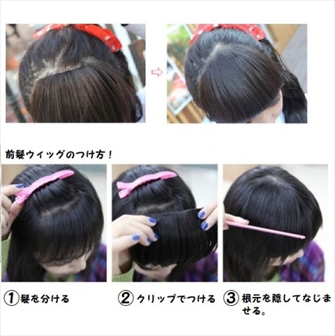 使用方法も簡単で、前髪部分にクリップで装着して、自分の髪となじませるだけ!