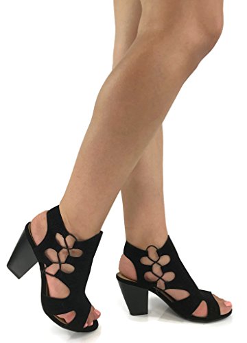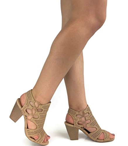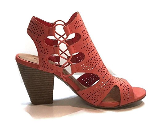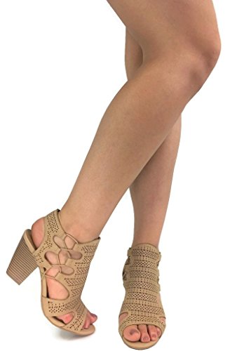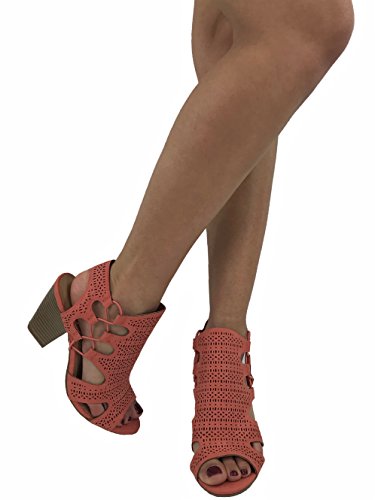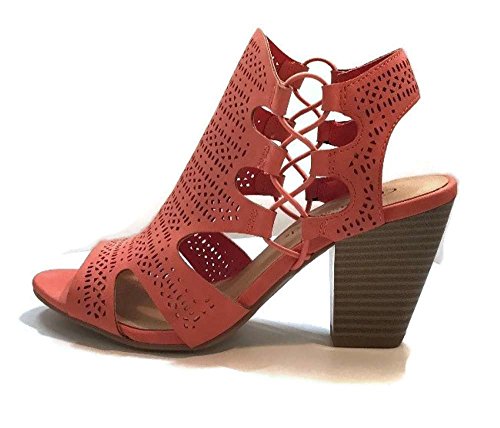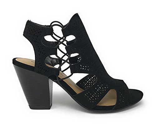 Product Description Soda women's open side bootie style sandal with criss cross elasic laces allow foot to slide in and feel comforatble all day! Open sides gives at strappy summer look. Peep toe front mid heel heigh 3.25" block heel. Imported. 0