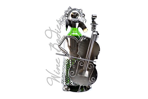 WINE BODIES ZB130 Woman Playing Celo Metal Wine Bottle Holder, Charcoal
