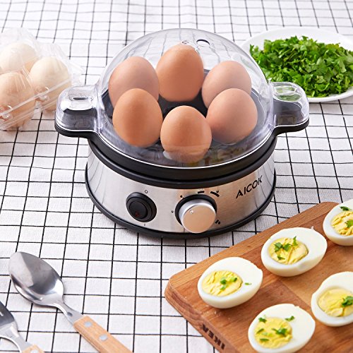 Healthy living starts today with the Aicok Upgrade Smart Egg Cooker! Cook hard, medium, or soft boil 7 eggs at a time. Perfect eggs Features: 1. Recipes included