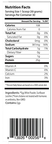 -. Feature : Paleo Protein Powder Is Soy Free (Egg Whites) From USA Farms (30 Servings Total) / Unflavored - Instantly Mixes In Water (GMO Free) (2 Lbs) IKDiet Phase 1 Compliant / Two Ingredients: Egg White Powder & Sunflower Lecithin (381mg Sodium Naturally Occurring) / Makes Incredible Shakes! 25g Protein Per Scoop (Highest Grade Egg Whites) / (Gluten Free) Great For Adding Protein To Your Recipes (Complete Protein) (Ideal For Lean Muscles)