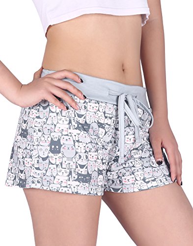 -. Feature : Perfect lounge shorts for relaxing, sleeping, yoga, traveling and light workouts | Drawstring waistband ensures comfortable fit / Sizing updated, no longer runs small | Cute and colorful pj shorts are designed to be a little roomy with a comfortable elastic waist / Small fits US 2-4 | Medium fits US 6-8 | Large fits US 10-12 | XL fits US 14 | Measured from a Medium: Waist: 30" | Hip: 39" | Inseam: 2.75" / Beautiful P.R.Ints and a functional drawstring accentuate the adorable designs | Look and feel like a dream with these pajama shorts for women / Casual, relaxed fit won't feel too tight or too loose and with the elastic waist nothing will pull on your skin or feel restrictive while you doze off to sleep