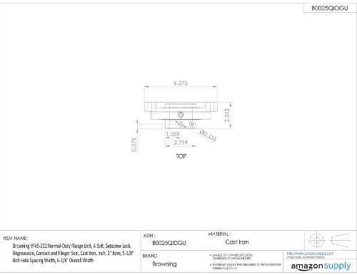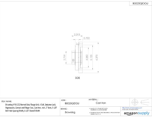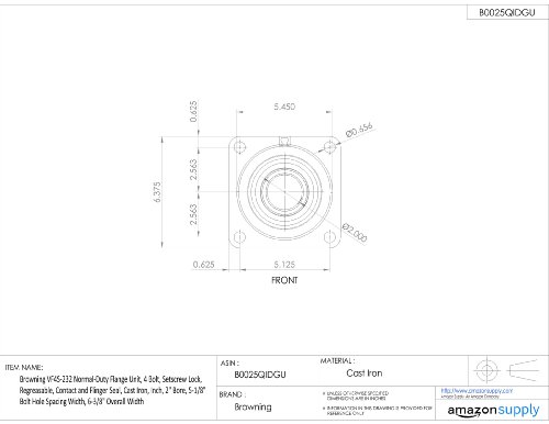 Browning VF4S-232 Normal-Duty Flange Unit, 4 Bolt, Setscrew Lock, Regreasable, Contact and Flinger Seal, Cast Iron, Inch, 2" Bore, 5-1/8" Bolt Hole Spacing Width, 6-3/8" Overall Width