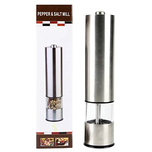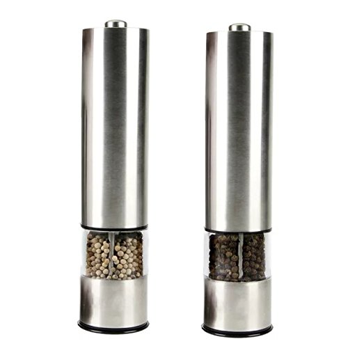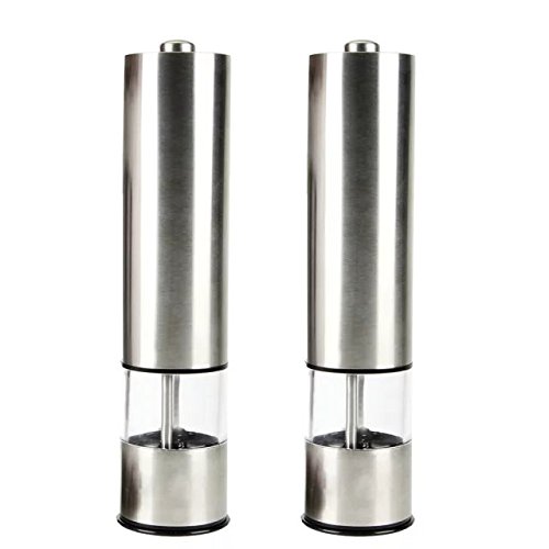 MASKELENA Stainless Steel Electronic Salt and Pepper Grinder Set with Adjustable Ceramic Coarseness LED lights (Pack of 2)