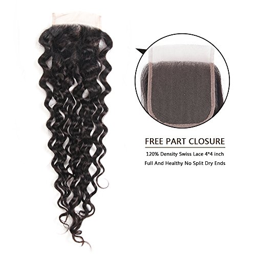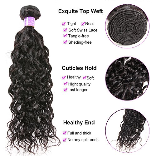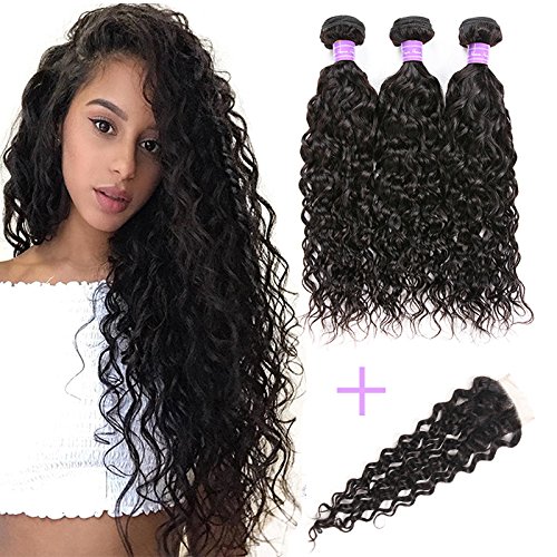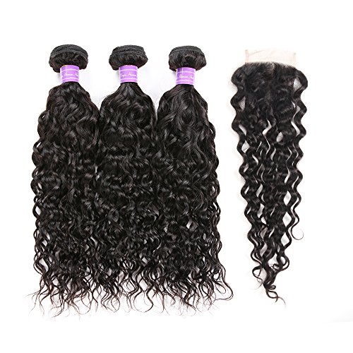 YIDA Hair Brazilian Hair Water Wave 3 Bundles With Free Part Lace Closure Human Hair Bundles Unprocessed Virgin Hair Bundle Deals No Shedding Weave...