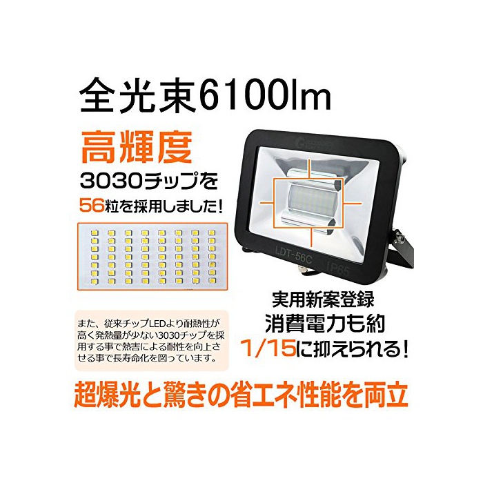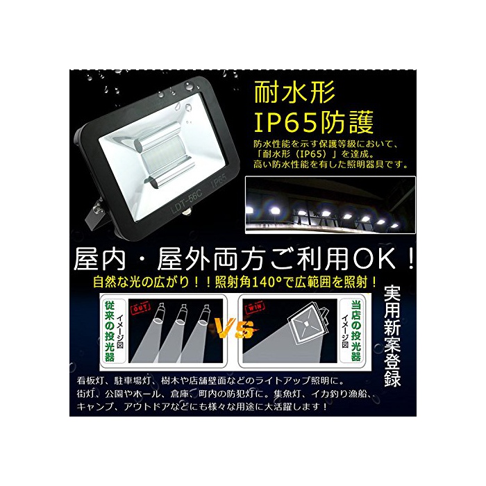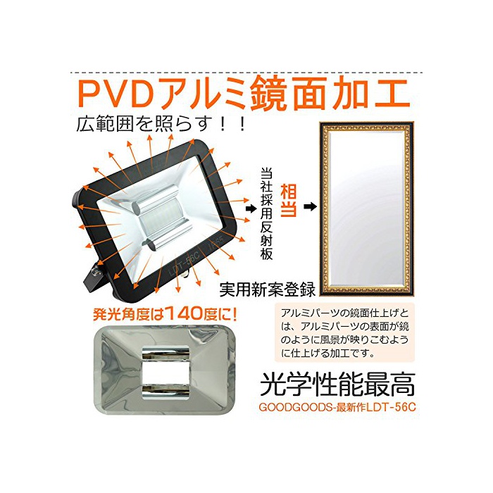 원본상품명: ?用新案登? GOODGOODS LED 集魚? 50W 500W相? 投光器 極薄型 LEDライト ?光色 船舶照明 ?角140度 屋外 防水 【一年保?】 LDT-56C