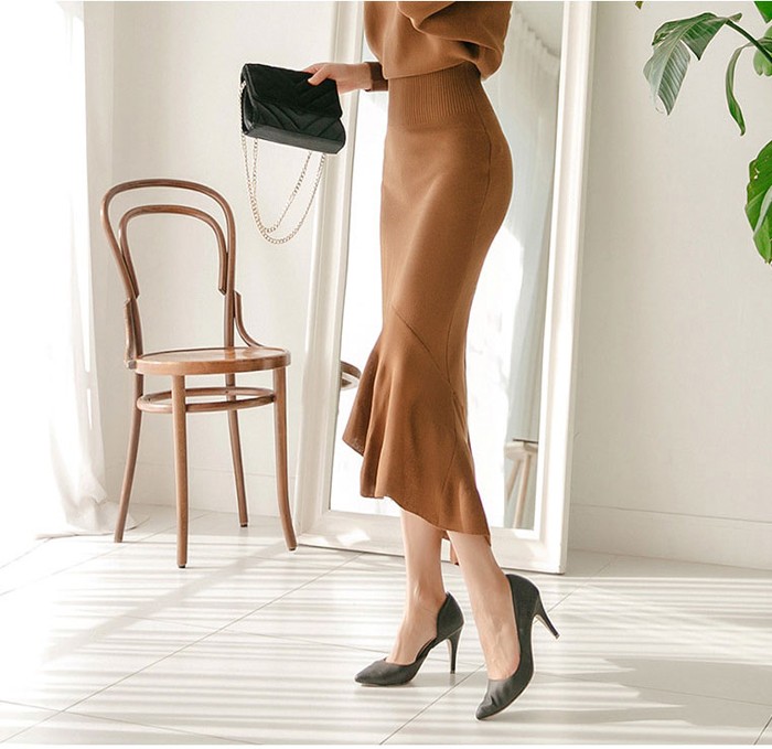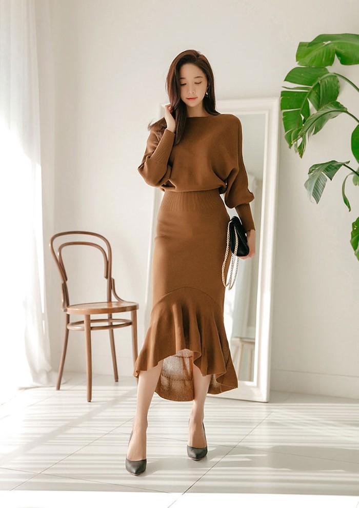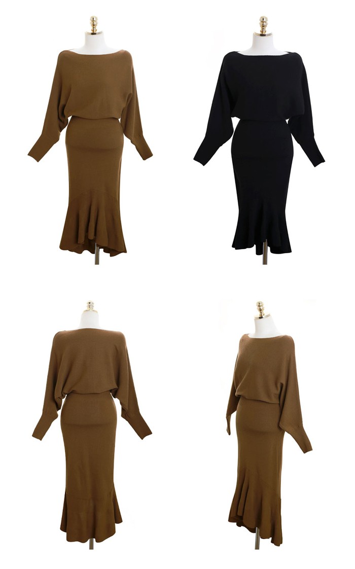 商品名:ワンピース ニットワンピース 無地 長袖 ロング丈