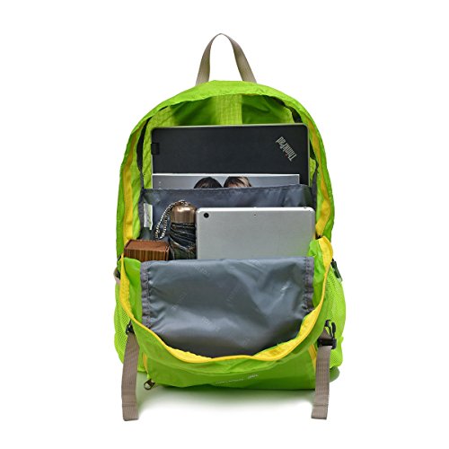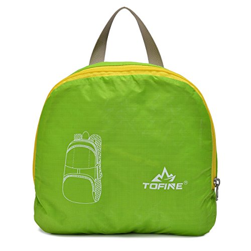 -. Brand : Tofine -. Color : Green -. Department : Womens -. EAN : 0732330877044 -. Feature : Easy to keep on hand since it folds into its own pocket and fits in your suitcase or backpack / The shoulder strap is adjustable for a perfect fit, and can also be removed if you prefer to carry the bag in your hand / Easy to keep clean since you can wash it in the washing machine / Small and foldable but has enough space to hold everything with you / The TOFINE backpack has a great size for day-to-day wear, work, school and commuting, while the showerproof Vinylon-F fabric ensures that your stuff stays safe -. IsAutographed : 0 -. IsMemorabilia : 0 -. Label : TOFINE -. Manufacturer : TOFINE -. MPN : 8225 Green -. PackageQuantity : 1 -. PartNumber : 8225 Green -. ProductGroup : Sports -. ProductTypeName : OUTDOOR_RECREATION_PRODUCT -. Publisher : TOFINE -. Size : 35 Liter -. Studio : TOFINE -. Title : TOFINE Large Travel Light Weight Foldable Backpack Camping Hiking Gear 35L Navy -. UPC : 732330877044