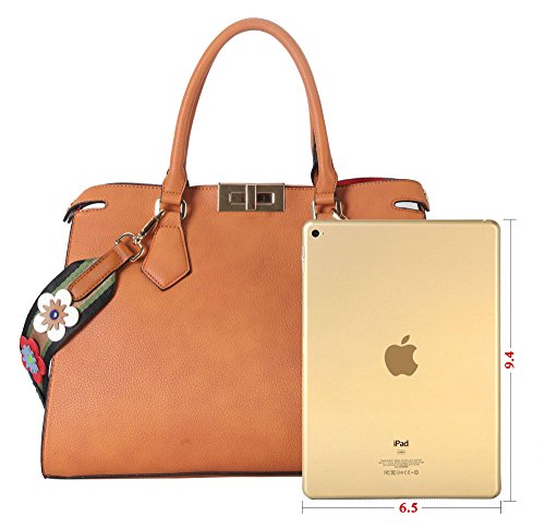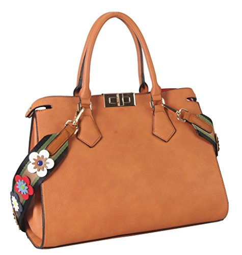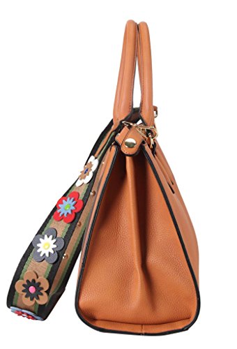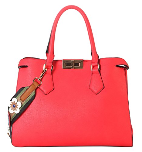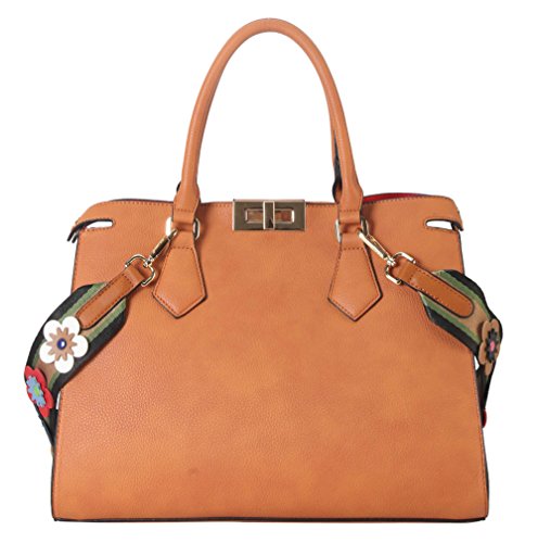 -. Feature : This handbag comes in 6 different colors: Beige, Black, Brown, Light Grey, Red, and Royalblue. / High Quality PU Leather Turn Lock Tote Womens Purse Handbag Accented with Colorful Floral Décor Strap. / High Quality Fabric Lined Interior with Multiple Interior Pockets. 2 Compartments with 1 Zippered Pocket and 2 Open Pockets Inside. / Approximate Size info: Length 14" x Width 5.2" x Height 10.4" Material: PU Faux Leather. Turn Lock Closure. / Color showing in other color is to show the different variation angles of the handbag. The actual bag ship, will be the one your purchesed.