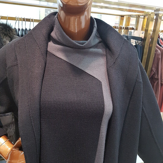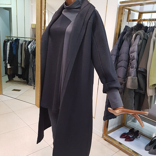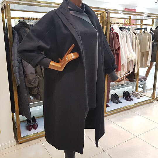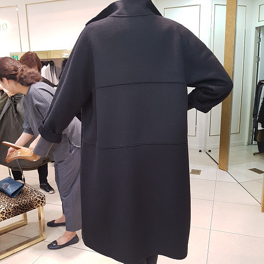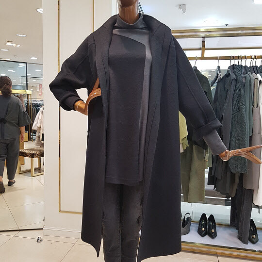 오버핏의 핸드메이드 롱코트 디자인입니다.