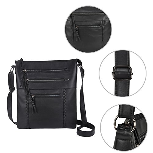 -. Feature : HIGH QUALITY MATERIAL:Crossbody bags for women made from top quality soft washed vegan leather, lightweight, water resistant and easy to keep clean / ADJUSTABLE LONG STRAP: Crossbody strap drop approximate 12"Min-23.5"Max Approximate size:12.6"(L)x10.2"(H)x1.9"(W), can carry your books, ipad, wallet, cellphone, cards, makeup umbrella etc / PERFECT STRUCTURE: Zipper closure crossbody bags for women is fully lined with fabric. Interior 2 slip pockets and 1 backwall zip pocket. Exterior 3 front pockets and 1 pocket at that back / LIGHTWEIGHT&SOFT: Durable shoulder bag is extremely lightweight, soft, it is quite roomy and plenty of space to carry all you daily essentials. / MULTIFUNCTION: Can be used as a crossbody bag, shoulder bag, crossbody purse, suitable for everyday use