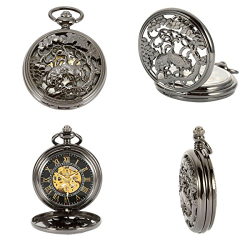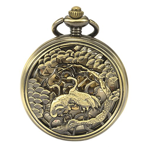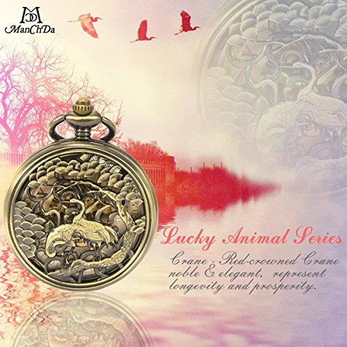 -. Title : ManChDa Vintage Automatic Mechanical Skeleton Hollow Lucky Cranes Pocket Watch For Men Women …