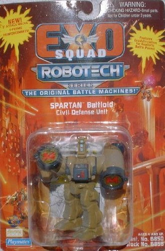 -. Binding : Toy -. Brand : Robotech -. EAN : 0043377068587 -. Feature : Robotech Spartan Battloid Civil Defense Unit 3 inches tall poseable action figure. / This is the Tan Civil Defense Unit version of the Figure. / Tri-Level searchlight, Signal Direct Radar. / Arm Mounted Missile Launchers, Missile Pods. / Made by Playmates in 1994 and long out of production. -. IsAdultProduct : 0 -. Label : Playmates -. Manufacturer : Playmates -. Model : 6858 -. MPN : 6858 -. PackageQuantity : 1 -. PartNumber : 6858 -. ProductGroup : Toy -. ProductTypeName : TOYS_AND_GAMES -. Publisher : Playmates -. Studio : Playmates -. Title : Exo Squad Robotech Series Spartan Battloid Civil Defense Unit -. UPC : 043377068587
