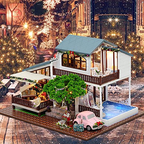 -. Title : WYD DIY Doll House Model London Holiday Villa Furniture Kits LED Lights Wooden Miniature House Toy For Christmas Birthday Gift