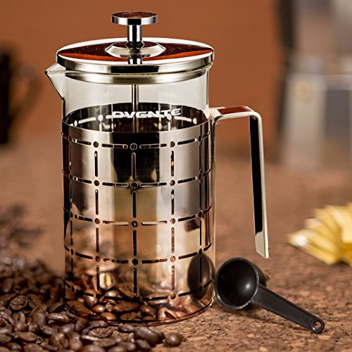 -. Brand : Ovente -. Feature : French Press Coffeemaker allows you to brew flavorful coffee in 4 minutes / Safety lid prevents splashing of liquids while pressing / Durable heat resistant borosilicate glass carafe; Stainless Steel handle and base / All parts are dishwasher Safe / 3-part stainless steel mesh filter; No paper filters required, means more flavor without any waste -. Label : Ovente -. Manufacturer : Ovente -. ProductGroup : Kitchen -. ProductTypeName : KITCHEN -. Publisher : Ovente -. Studio : Ovente -. Title : Ovente Stainless Steel French Press Coffee Maker, Great for Brewing Coffee and Tea