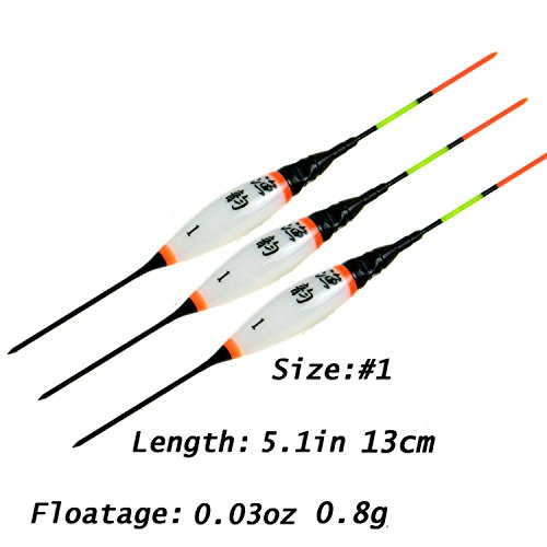 -. Feature : 1.HOW TO ATTACH THE FLOATS TO LINE? A.insert the floats bottom tip into the rubber stopper.B. Then,the rubber stopper will hold the floats firmly. C. attach the fishing line or rigs with the swivel of rubber stopper as the second photo showed. (Note: free 5pcs rubber stoppers included) / 2.NANOPHASE MATERIAL: Made of lightweight nanophase materials with better buoyancy and sensitivity. The floats won't absorb water, long service life. Short tail and foot, light weight, perfect for catching fish, such as panfish, steelhead, walleye, and catfish, Carp, Crucian Carp etc. the shallow water fishing . / 1.BRIGHT LIGHT: Bright and luminous color is visible at night, Float on water vertically. The battery will be last 300hours so you didn't worry about the float cannot lighted. Battery: CR425 , 4.2X25.9mm , 0.62g , 3.0v, 25mAh , each float with one battery (stand alone Packaged ). / 4.SIZE: #1, total length: 5.1in/13cm, buoyancy:0.03oz/0.8g / 5. BUY WITH CONFIDENCE: 24h friendly customer service and email support. If you have any problem, please contact our customer support and we will reply you within 24 hours.