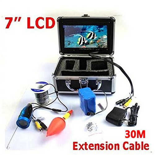 -. Feature : 7 inch TFT color monitor with sun-visor, Color CCD and HD 900 TV linesof the camera; / Waterproof, fish model designand durable material, Cold-resistant, waterproof and pull-resistantcables / 100ft for the camera extension cable length / 12 high-power white lights for camera light source, continuous using time of the battery is up to 7 hours / This HD underwater video camera system has a light weight and small size, which is very convenient for you to carry anywhere you want.