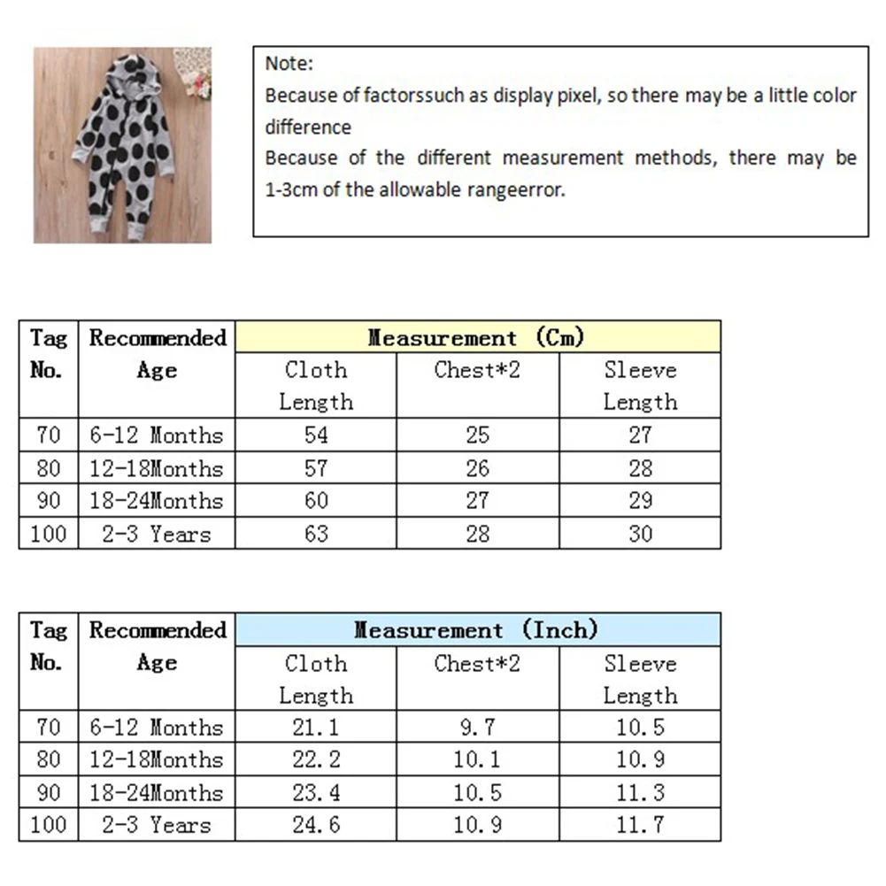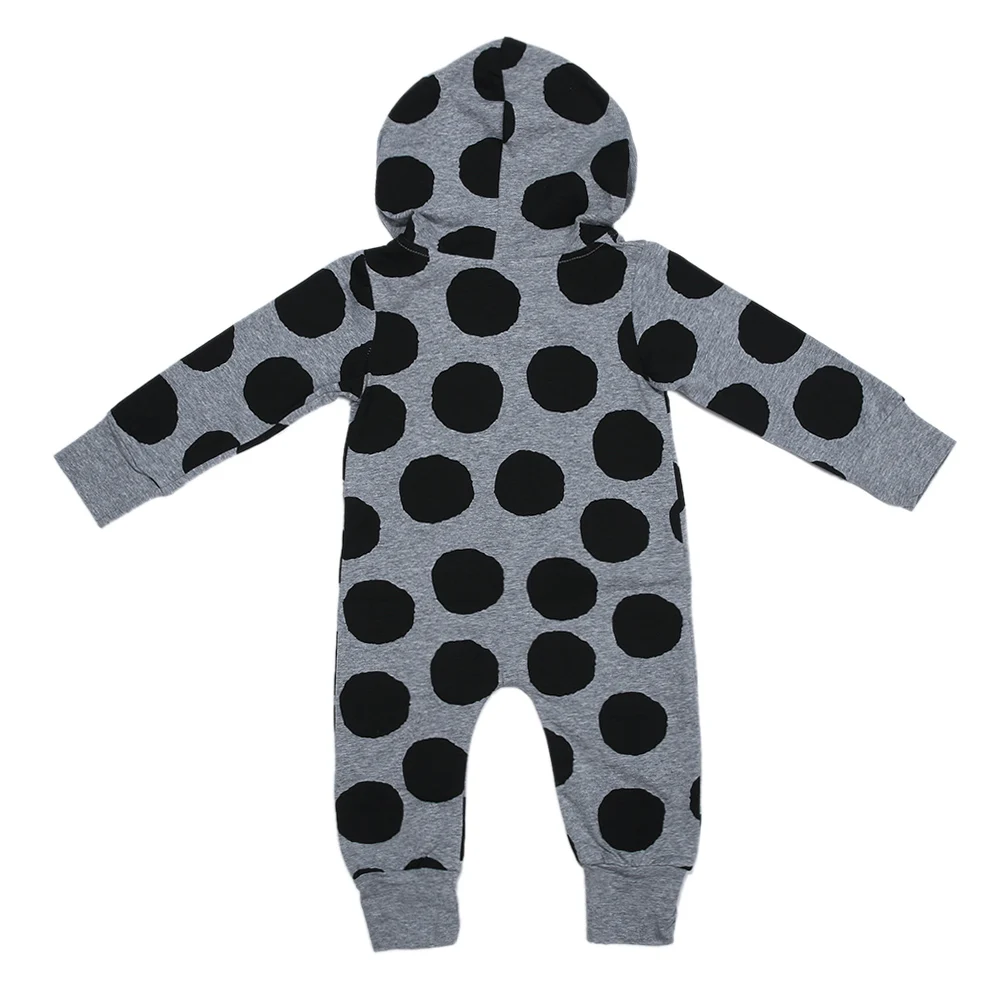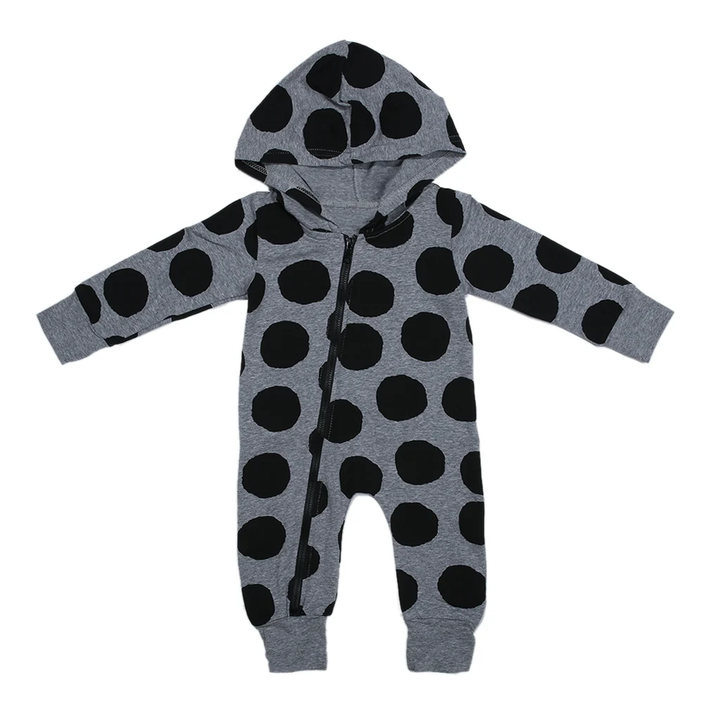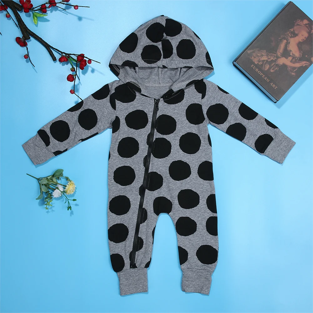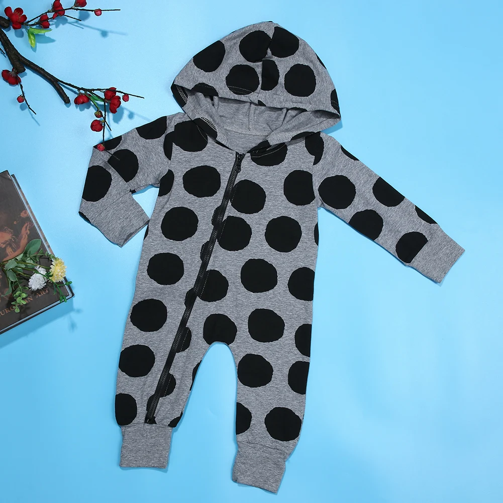Unisex Newborn Baby Boys Girls Polka Dots Long Sleeve Zipper Hooded Romper
