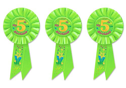 Beistle RS055 3Piece My 5Th Birthday Rosette, 3.25" x 6.5", , Multicolored