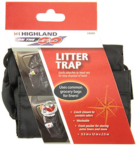 -. Feature : Uses common grocery bags for liners / Front pocket holds tissues or extra liners / Cinches to contain odors / Washable / Black 5.5 x 12 x 2.5 inch
