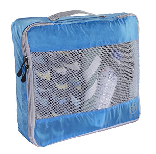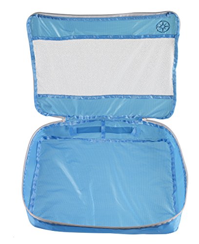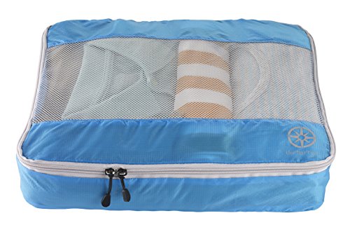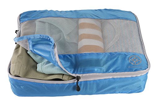 -. Feature : Ultra-light weight, water-resistant translucent rip-stop silnylon, provides durability and allows easy identification of clothes packed / Interior seams are fully sewn with protective nylon tape for durability / Snag resistant mesh top panel, allows for ventilation, identification, and keeps delicate fabrics protected / Top webbing handle, for carrying as a single item / Nylon coil self-repairing zippers glide smooth sizes- large: 14.5 x 11.5 x 3 inches