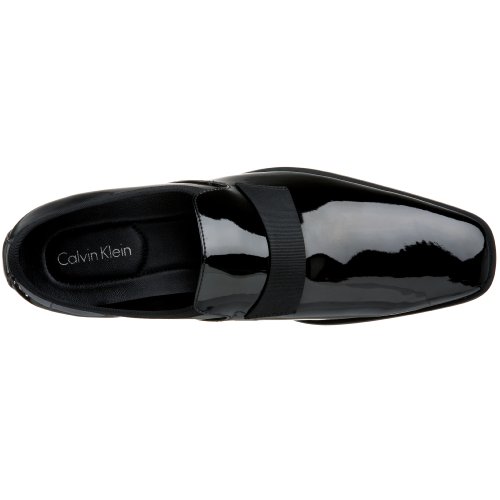 Amazon.com Create a strong, fashionable look with this formal slip-on loafer from Calvin Klein. The Guilford features a shiny patent leather upper with a fabric strap detail at the vamp for a touch of texture. A leather sole delivers a smooth, confident step for those formal occasions this season. 0