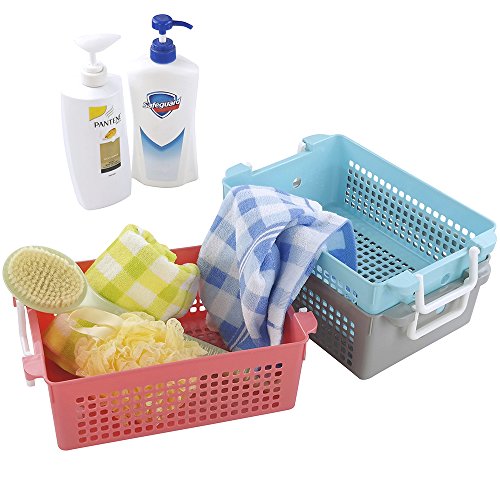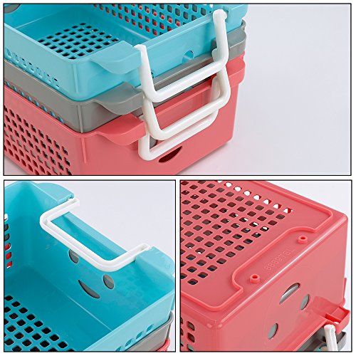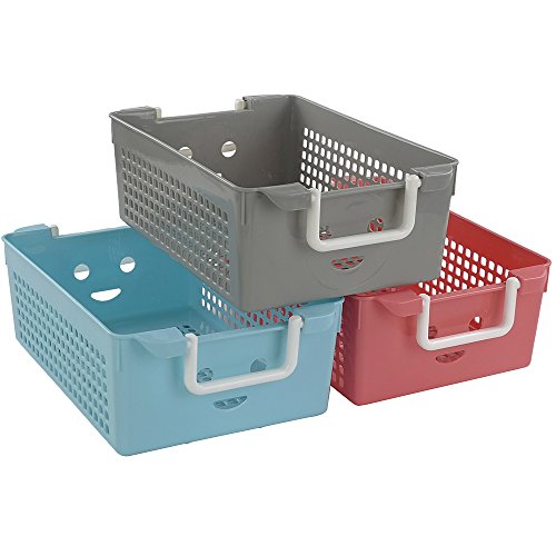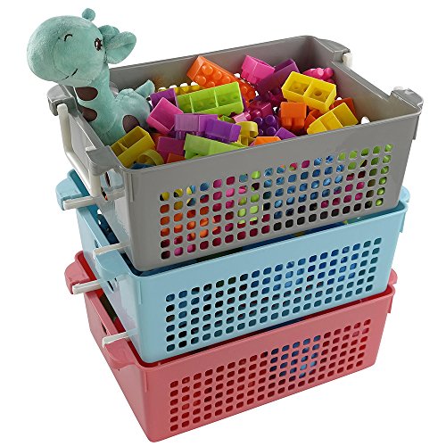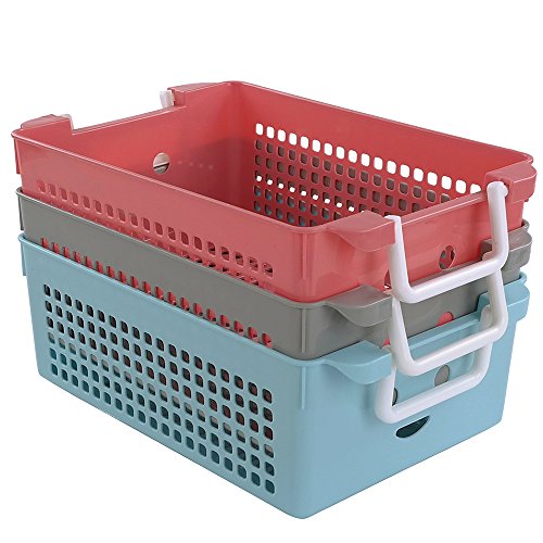 Wekiog Plastic Stacking Storage Basket with Handles, 3-Piece
