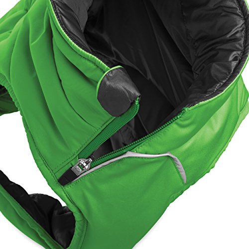 -. Feature : 200-GRAM SYNTHETIC INSULATION: Keep your dog cozy and comfortable on those cool, brisk days with this warm, water-resistant jacket. Made with 200 gram synthetic insulation and polyester fabric, this jacket provides warmth in extreme cold or inclement weather. / VEST STYLE WITH SELF-LOCKING NECK ZIPPER: This vest style jacket provides good coverage and features autolock buckles on each side to secure the jacket during activity and provide easy on/off. The self-locking zipper can be adjusted to a variety of different sizes to provide a custom fit for different shapes of dogs. / LIGHTWEIGHT AND EASILY PACKABLE: The lightweight Quinzee Jacket easily packs down into its integrated stuff sack, making it backpack friendly and convenient for dogs and their humans alike. When undesirable weather hits, simply pull it out of your pack and put it on your dog with ease. / LOW LIGHT VISIBILITY: The jacket's reflective trim helps you keep an eye on your dog, even in low-light visibility environments, and includes a light loop for attaching The Beacon light (sold separately) for additional visibility. / QUINZEE SIZING: The Quinzee Jacket is available in 6 sizes (see images for sizing chart): XX-Small: 13-17 inches (33-43 cm); X-Small: 17-22 inches (43-56cm); Small: 22-27 inches (56-69 cm); Medium: 27-32 inches (69-81 cm); Large: 32-36 inches (81-91 cm); X-Large: 36-42 inches (91-107 cm). Choose the right size based on your dog's girth. Girth can be determined by measuring around the widest part of the rib cage. For in between sizes, choose the larger coat for more coverage.