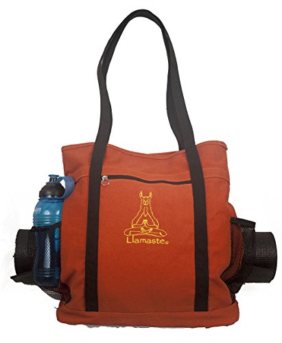 Studio : Llamaste, inc Publisher : Llamaste, inc Binding : Sports Product Description Llamaste Premium Edition Yoga Tote Bag in vibrant marsala color is designed in classic tote bag shape and will make a great fashion statement as you go to your yoga practice. The roomy and well-ventilated main compartment is lined with Llamaste logo pattern and accommodates yoga accessories, as well as your clothes, towel or blanket, while separate velcro compartments of all sizes accommodate a laptop or tablet, and daily necessities. Another zipper compartment is located on the exterior of the bag for easy access to your keys or wallet. The shoulder strap fits comfortably around the shoulder of your choice and included on the exterior are two straps to securely hold your yoga mat in place. Side mesh compartments accommodate a water bottle and ventilation holes are at bottom of bag for your clothes after your vinyasa practice. Note: Mat and water bottle are not included 0