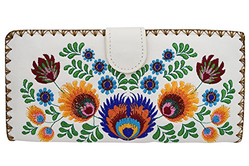 Product Description This is beautifully embroidered colorful bohemian flower arrangement design wallet which will surely bring a smile to your face! The perfect combination of traditional and modern, the wallet's fun design stands out on the vegan "leather", made to look and feel like real leather! Comes in a beautiful gift box. 0