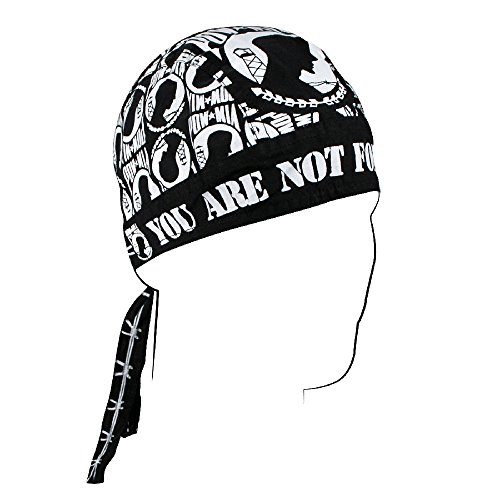 -. Feature : The ZANheadgear Flydanna is a bandanna transformed into a headwrap / The Flydanna du-rag works well as moisture barrier underneath a helmet / The bandana is constructed of 6 panels and is made of 100% Cotton / Ties in the back which makes these Skull Caps truely a One Size Fits All / Includes a Bike Shop Supply Certificate of Authenticity / Warranty