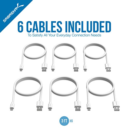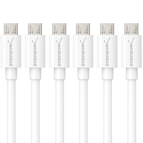 Sabrent [6-Pack] 22AWG Premium 3ft Micro USB Cables High Speed USB 2.0 A Male to Micro B Sync and Charge Cables [White] (CB-M63W)