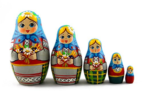 -. Title : Matryoshka Matrioska Babuska Russian Nesting Wooden Doll Bouquet Of Meadow Flowers 5 Pcs Stacking Hand Painting Beautiful Nested Great Craft Matriosjka Matrioska Matreshka Matrjoska Matroeska