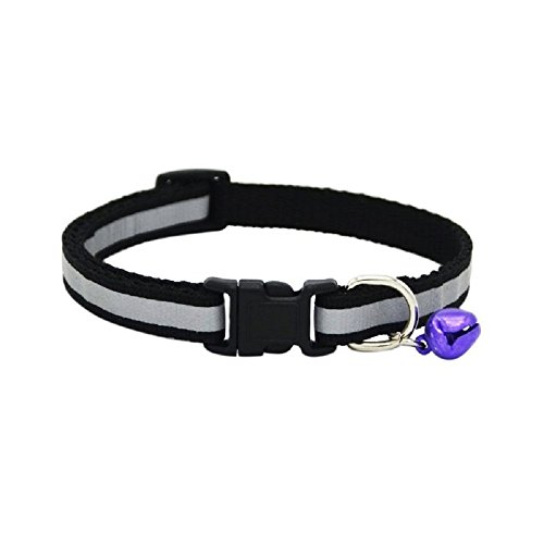 Da.Wa Black Reflective Pet Small and Medium Size Dog Cat Adjustable Collar with Bell Necklace Gift
