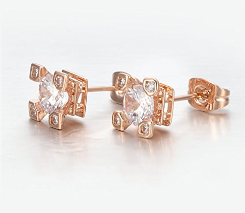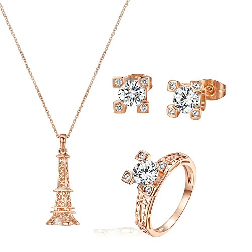 -. Title : Yoursfs Eiffel Tower Jewelry Set 18K Rose Gold Plated Pendant Necklace Zirconia Ring Stud Earrings Set