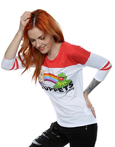 Celebrate the world's most famous puppet couple with this piece of official Muppets merchandise. This is women's raglan top comes with 3/4 length sleeves and a drop hem along with a side seamed construction for a fitted, feminine look. If you prefer something more relaxed fitting, we recommend ordering one size up.