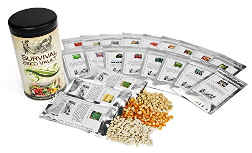 Survival Seed Vault Non-GMO Hardy Heirloom Seeds for Long-Term Emergency Storage – 20 Variety Pack in a Sturdy Can