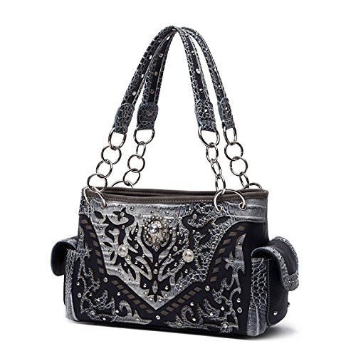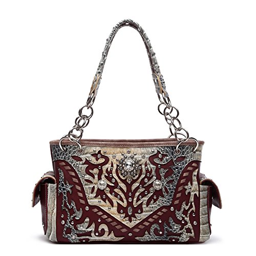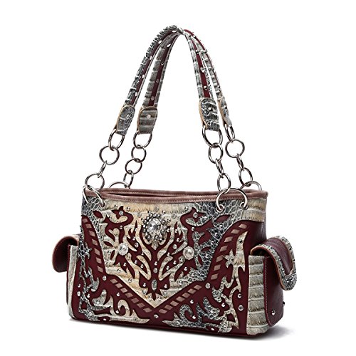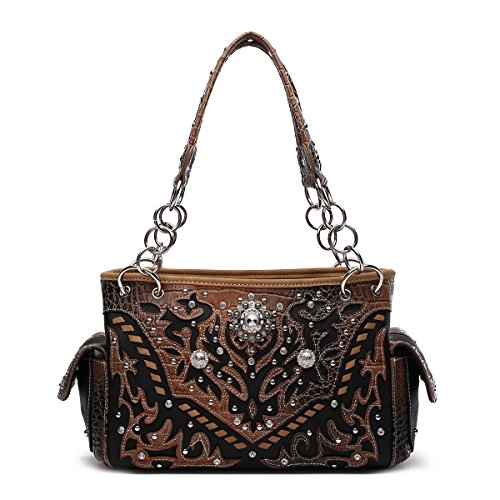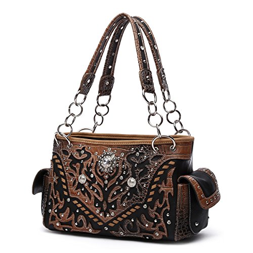 (Cowgirl Trendy)/Accessories/Handbags/DIRECT FROM USA/Western Handbag - Classic Two Tone Studded Concho Western Satchel Bag