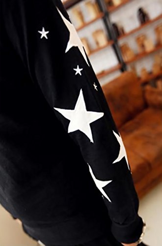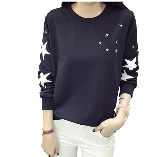 -. Feature : 星マークが目を引くおしゃれなロング袖のトップスです。ソフトな肌触りと程よく効いたストレッチでサラリとした着心地。 / ベーシックな定番トレーナーなので幅広いテイストで使え1枚もっておくととっても便利な1枚です。 / 普段使いだけではなく、部屋着、ルームウェアやマタニティーウェアとしてもお使いいただけます。 / 袖には大小の星が、胸元には小さな星がバランスよく配置された可愛いガーリー風のデザインです。 / 星マークの配置がとてもよいディテールで、デニムパンツやチノパン、スカートなどコーデの幅が広がります。