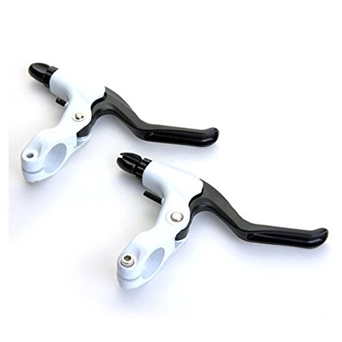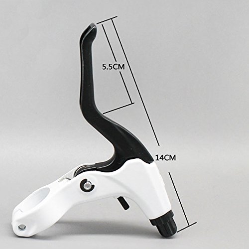 High quality aluminium alloy hand brake levers suit for Bicycle and Mountain bike Comfortable handle, powerful braking force and excellent resilience Fashionable and novel black and white color Name: Mountain bicycle bike hand brake lever Color: White and black Material: Aluminium alloy Dimension: About 146 x 96 x 29 mm Outer packing dimension: About 178 x 150 x 30 mm Specification: 3 finger version Applicable tube diameter: About 22 mm Use with V brake and caliper brake Package included: 2 x Hand Brake LeverFeature