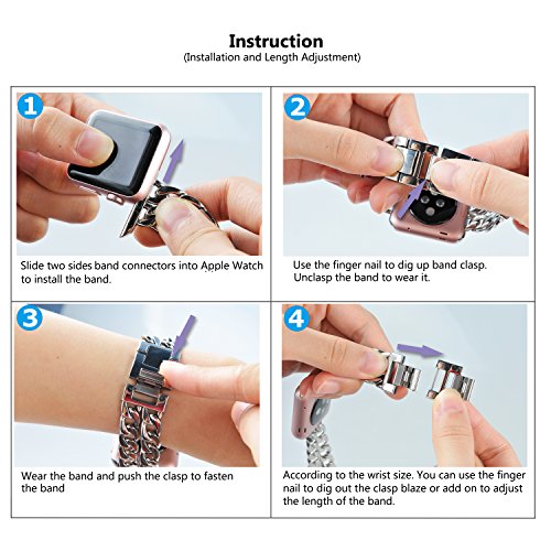 Apple Watch Band, PUGO TOP Stainless Steel Metal Chain Band for Apple Watch Series 3 Series 2 Series 1