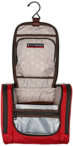 -. Binding : Accessory -. Brand : Victorinox -. Color : red -. Department : unisex-adult -. Feature : Large main compartment features mesh divider, zippered pocket and pocket with easy-to-clean antibacterial lining helping to prevent the growth of odor-, mildew- and mold-causing bacteria / Zippered side pockets with water-resistant finish and loops for toothbrush, toothpaste, razors and shower bottles / Top hook displays kit from shower bar or towel rack and tucks away when not in use / Top grab handle allows for easy carrying / 4.25x9.25x10 / Two interior zipper pockets, two interior slip pockets. Interior hook for hanging -. Label : Victorinox Travel Gear -. Manufacturer : Victorinox Travel Gear -. Model : 311730 -. MPN : 31373003 -. PackageQuantity : 1 -. PartNumber : 31373003 -. ProductGroup : Apparel -. ProductTypeName : LAGE -. Publisher : Victorinox Travel Gear -. Size : One Size -. Studio : Victorinox Travel Gear -. Title : Victorinox Hanging Toiletry Kit
