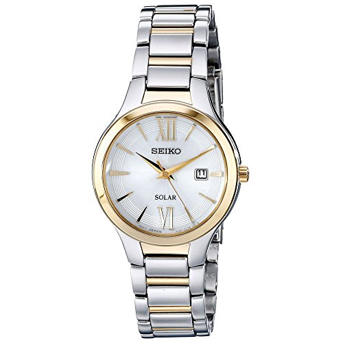 Round watch featuring milky white dial with ribbed texture, date window, and gold-tone hands/indices