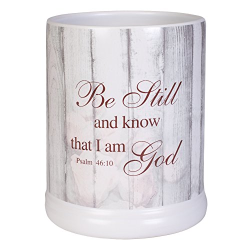 Be Still Psalm 46:10 Distressed Wood Design White Ceramic Stone Jar Warmer
