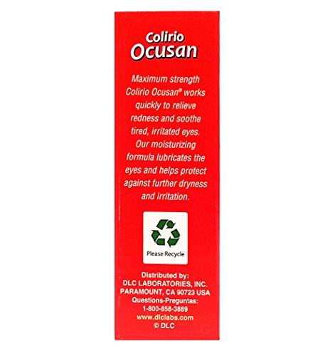 -. Binding : Health and Beauty -. Brand : De La Cruz -. EAN : 0605100034063 -. Feature : Soothing redness reliever of the eyes (Red Eyes) / Ecxellent lubricant for irritated eyes / Effective relief for eyes which are itchy / Keep your eyes fresh and brilliant / Relieves eye irritationcaused by dust, smog, direct sunlight, reading, excessive driving or lack of sleep -. Label : De La Cruz -. Manufacturer : De La Cruz -. MPN : DLC15191 -. PackageQuantity : 1 -. PartNumber : DLC15191 -. ProductGroup : Beauty -. ProductTypeName : HEALTH_PERSONAL_CARE -. Publisher : De La Cruz -. Studio : De La Cruz -. Title : Colirio Ocusan - Eye Drops - Red Eyes - De La Cruz -. UPC : 605100034063