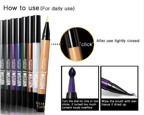 - Feature : It provides a fresh liquid eye liner by using an auto-turn container. / Powerful waterproof effect gives high-defined eye line without smudging all day. Vivid clolrs and brilliant pearls present trendy eye make up. / 13ml / made in korea