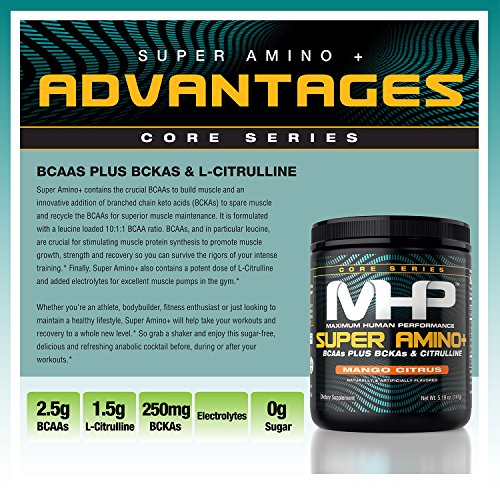 ReleaseDate : 2017-07-03 Studio : Maximum Human Performance Publisher : Maximum Human Performance Binding : Health and Beauty Product Description Super Amino contains the crucial BCAAs to build muscle and an innovative addition of branched chain keto acid (BCKAs) to spare muscle and recycle the BCAAs for superior muscle maintenance. It also contains a potent dose of L-Citrulline for excellent muscle pumps in the gym. 0