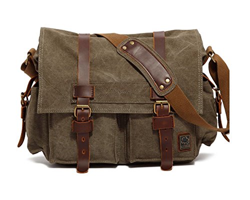 -. Title : Evercoss Unisex Canvas Shoulder Messenger Bag with Genuine Leather decoration
