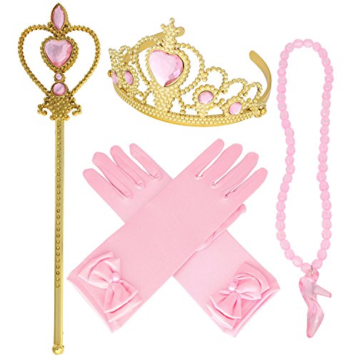 Accessory set includes: a Pair(2) of Gloves, Tiara/Crown, Wand/Scepter and necklace.